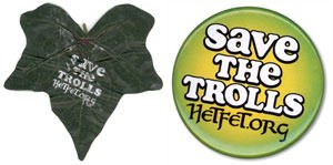 So far the site has an essay on endangered trolls, a forum, an area to grab the link codes for their banners (see one just below), and a store, which, by the way, has those “Save the Trolls” buttons for sale for $1.75.