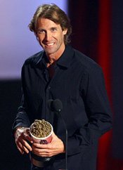 I noticed during tonight’s live broadcast of the 2008 MTV Movie Awards that the cameras panned frequently over to Transformers director Michael Bay seated in the audience. (Amusingly enough the first time they flashed on Bay was when Will Smith was accepting the award for Best Male Performance for I Am Legend and Smith admitted to making some bad movies. Bay directed Smith in Bad Boys and Bad Boys II.)
