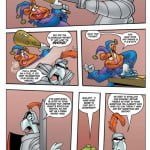 Besides this being King Arthur and The Muppets, two of my favorite things, what really got me to open this issue was the cover art by David Peterson, creator of Mouse Guard, who’s doing covers for the four-issue run (Dave Alvarez is doing the alternate covers, which are aimed more for children). I happen to love Peterson’s art, and was really enticed by his cover for this first issue, which definitely has an Arthurian feel. While vastly different from Peterson’s cover, co-writer Patrick Storck’s interior art is a perfect match for this cartoony tale and its silly humor. The artwork is clear with panels that are easy to follow, which is very important for young readers, without over simplifying the layout, which would turn off adults.