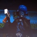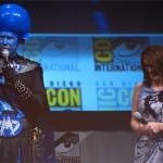 Q&A featured a guy who ripped off his shirt to reveal the words “Mega Mind” scrawled on his chest, and Comic-Con regular Bob Stencil, who asked if blue characters (such as MegaMind, Avatar’s Na’Vi, and the Smurfs) are a trend in Hollywood to stay. One attendee asked what the actors’ most memorable acting moments were: Fey’s moment was when she got Carrie Fisher to say “Help me Liz lemon, you’re my only hope,” on 30 Rock. Jonah Hill announced (jokingly) that he was officially playing The Hulk in Marvel’s Avengers movie.