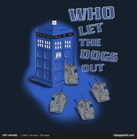 The $10 t-shirt deal of the day over at RIPT Apparel today is the Doctor Who-themed shirt called “Who Let The Dogs Out” by WeRsNs.