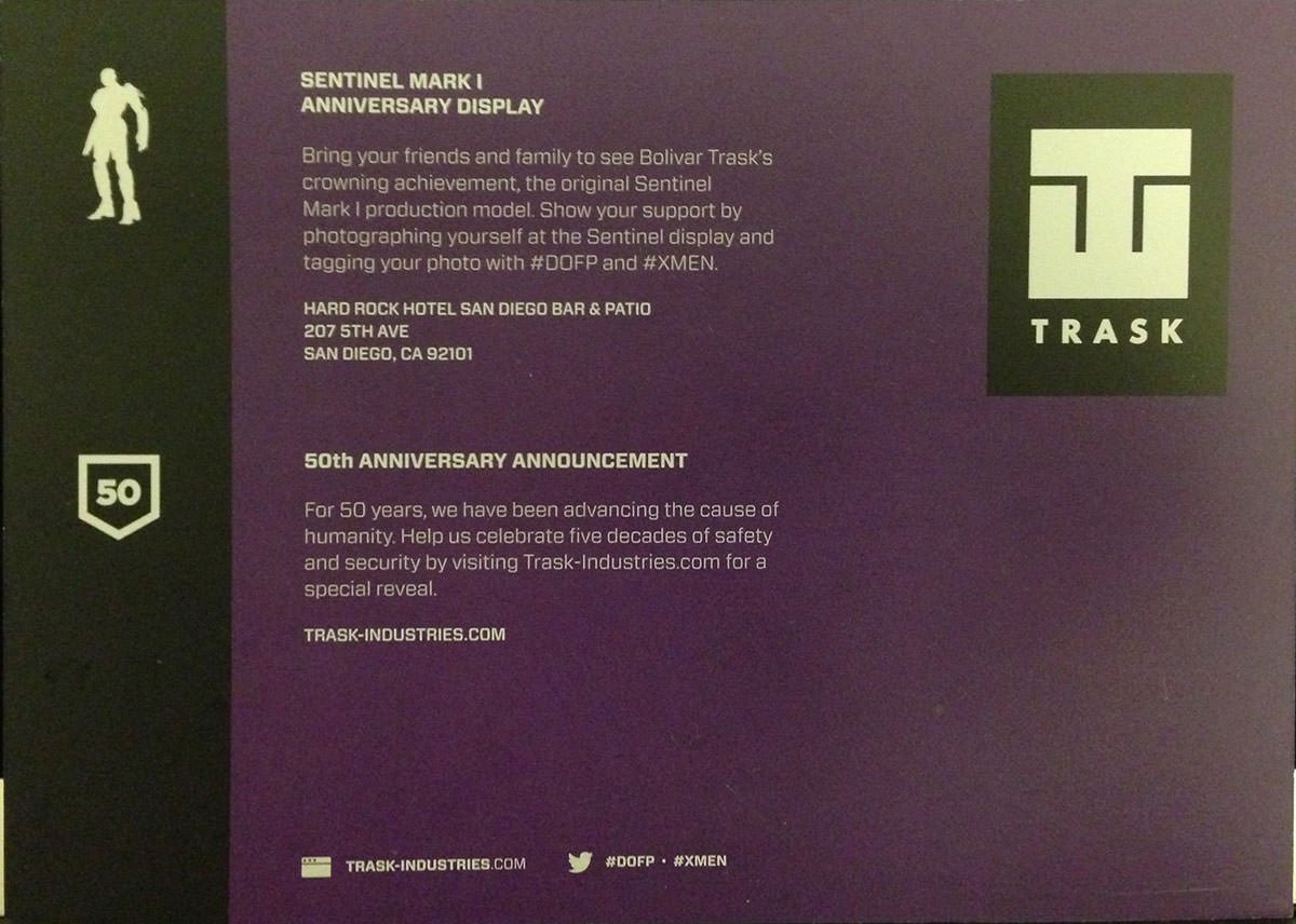 SDCC 2013: X-Men: Days of Future Past Trask Industries flyer back