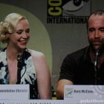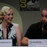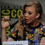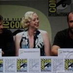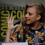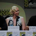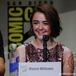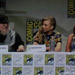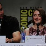 The cast of HBO’s hit series Game Of Thrones along with creator George R.R. Martin and showrunners David Benioff and D.B. Weiss made an appearance today in Hall H today at San Diego Comic-Con. The actors on the panel were Gwendoline Christie (Brienne of Tarth), Nikolaj Coster-Waldau (Jaime Lannister), Natalie Dormer (Margaery Baratheon), Kit Harington (Jon Snow), Rose Leslie (Ygritte), Rory McCann (Sandor Clegane “The Hound”), Pedro Pascal (Oberyn Martell), Sophie Turner (Sansa Stark), John Bradley (Samwell Tarly), and Maisie Williams (Arya Stark).
