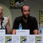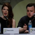 During the audience Q&A portion of the panel, a fan dressed as Jon Snow asked Harrington and Leslie about the scene during the battle when Jon Snow and Ygritte see each other again. Harrington says he thinks he’s just happy to see her and doesn’t care about flying arrows; Leslie says her character was on a ruthless mission to get back at her former lover, and didn’t realize how much she truly loved him until she saw him again. She also revealed that she and Harrington didn’t really discuss the scene much beforehand, as they wanted to just let things happen naturally.