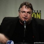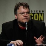 Chobot asked what attracted del Toro to return to the world of gothic horror. Del Toro said he wanted to make a movie that blended two sides of his personality, the painterly style of his Spanish-language films and the FX heavy, action side of films like Hellboy. When Universal offered him Crimson Peak, he thought it was a perfect opportunity to jump back into the genre. He encouraged everyone to visit the Crimson Peak experience at the Legendary booth at SDCC, describing it as “fucking awesome.” He apologised that he didn’t bring any stars with him, as the film is still in an early stage of production, but promised that next year at SDCC, he’ll bring the whole cast, including “Tom fucking Hiddleston,” whom he described as “incredibly nice.”