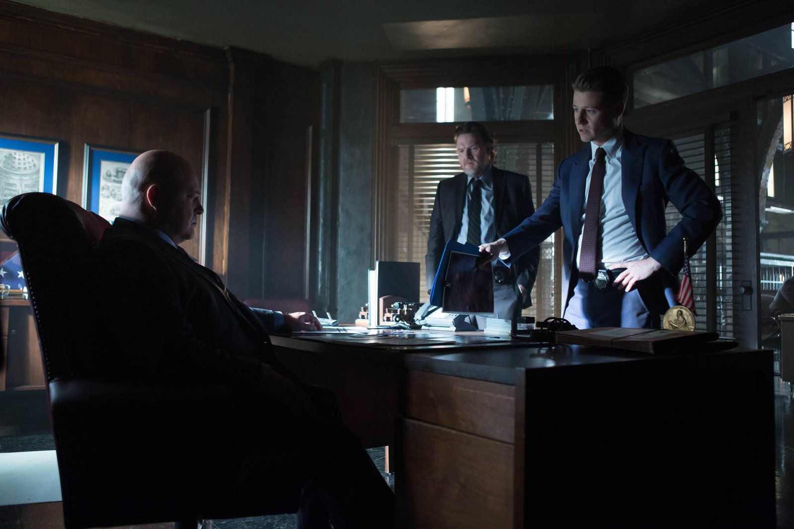 GOTHAM: L-R: Michael Chiklis, Donal Logue and Ben McKenzie in the Rise of the Villains: Tonight’s the Night episode of GOTHAM airing Monday, Nov. 9 (8:00-9:00 PM ET/PT) on FOX. ©2015 Fox Broadcasting Co. Cr: Nicole Rivelli/FOX.
