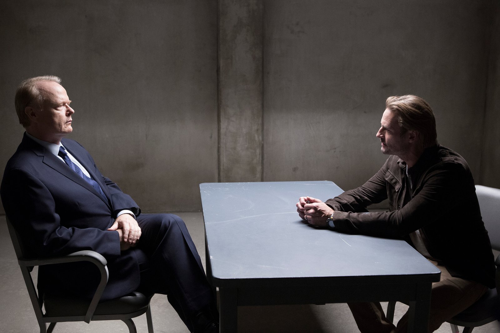 COLONY — “Company Man” Episode 205 — Pictured: (l-r) Josh Holloway as Will Bowman, Toby Huss as Bob Burke — (Photo by: Isabella Vosmikova/USA Network)